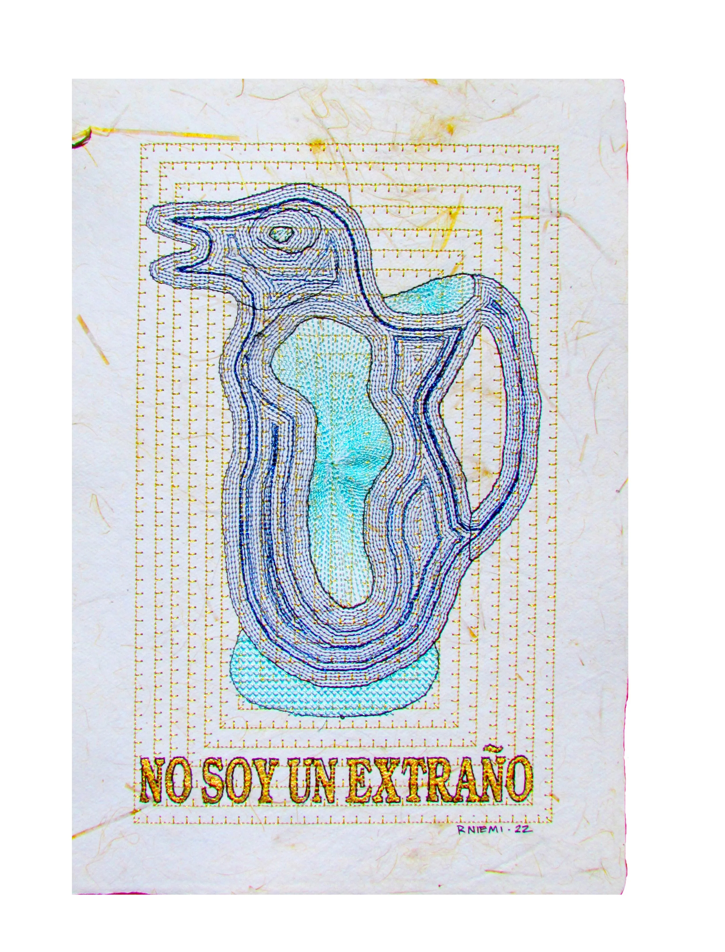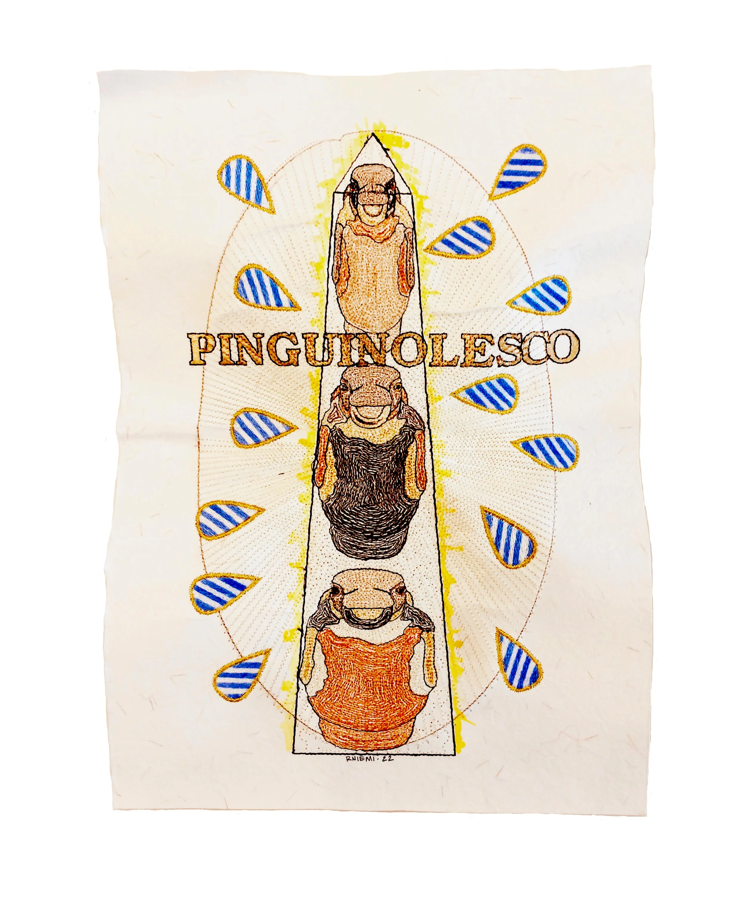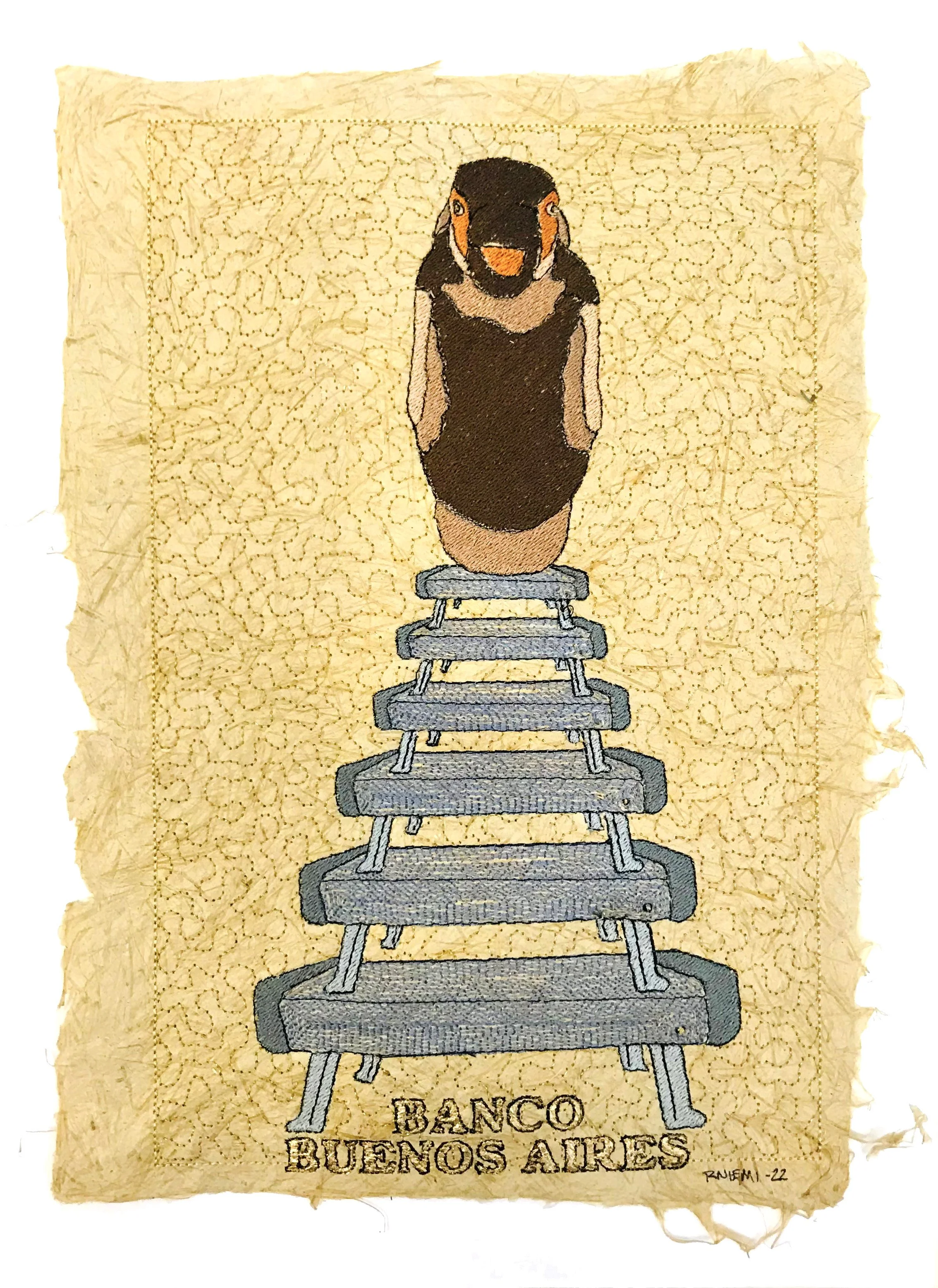 Embroidery on Handmade Paper, each is about 8” x 10”.